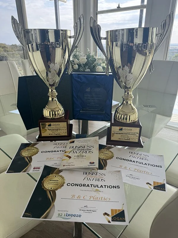 We are humbled and honoured to share that B & C Plastics received three awards at Friday night’s Logan Chamber of Commerce Business Awards: