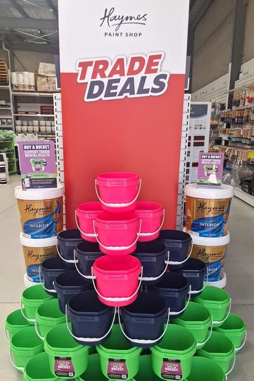 These brightly coloured buckets do more than carry paint—they help carry a conversation about mental health for tradies, truckies, farmers, and blue-collar workers who often put everyone else first.