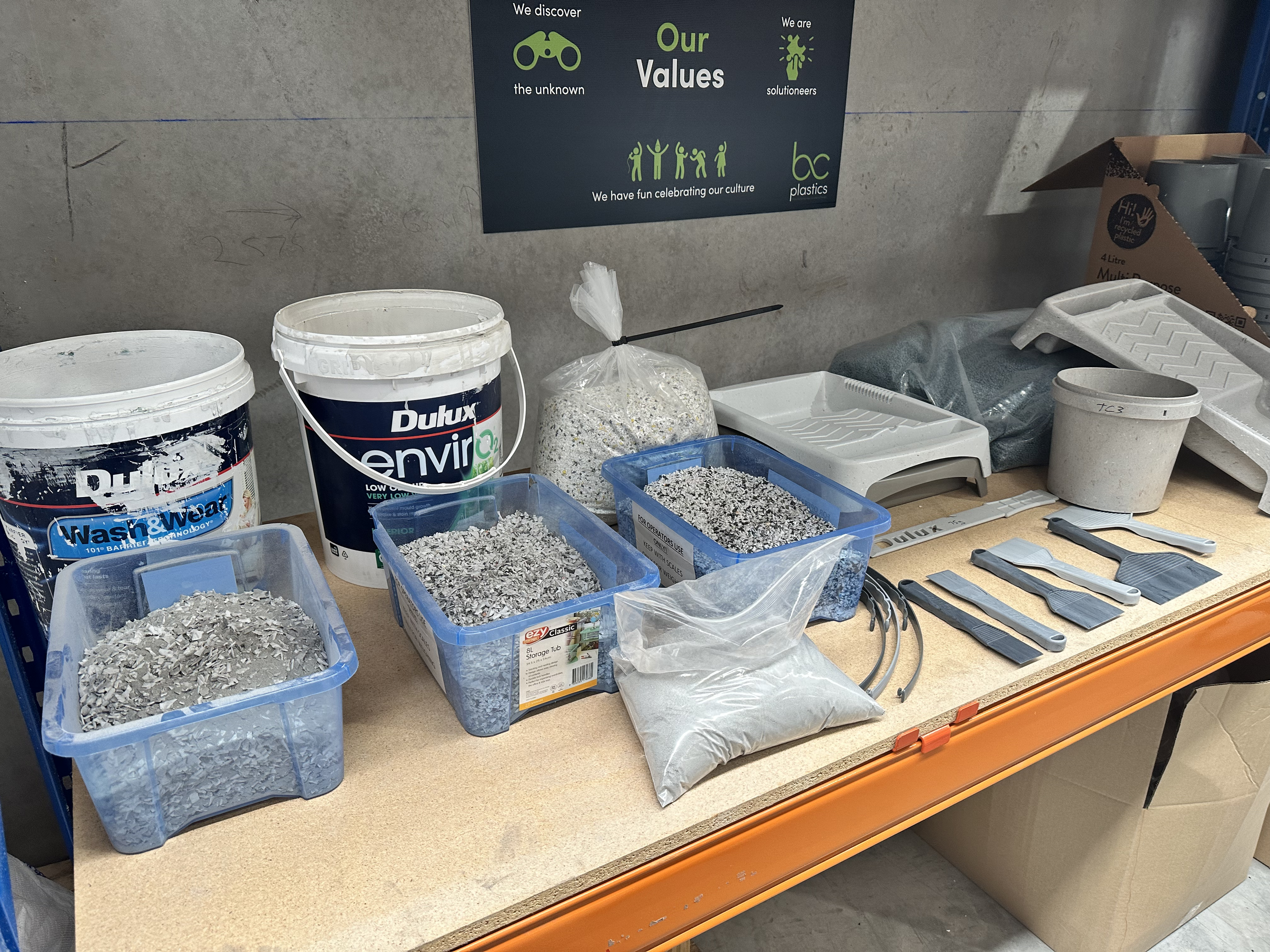 The recycled polymers are moulded or extruded into boards, panels, decking, bollards, and construction components.